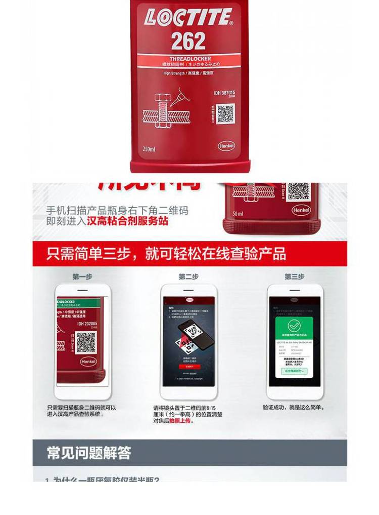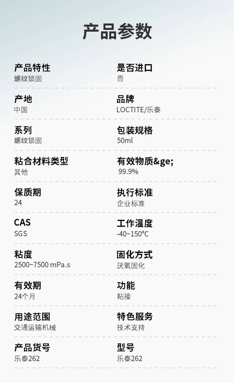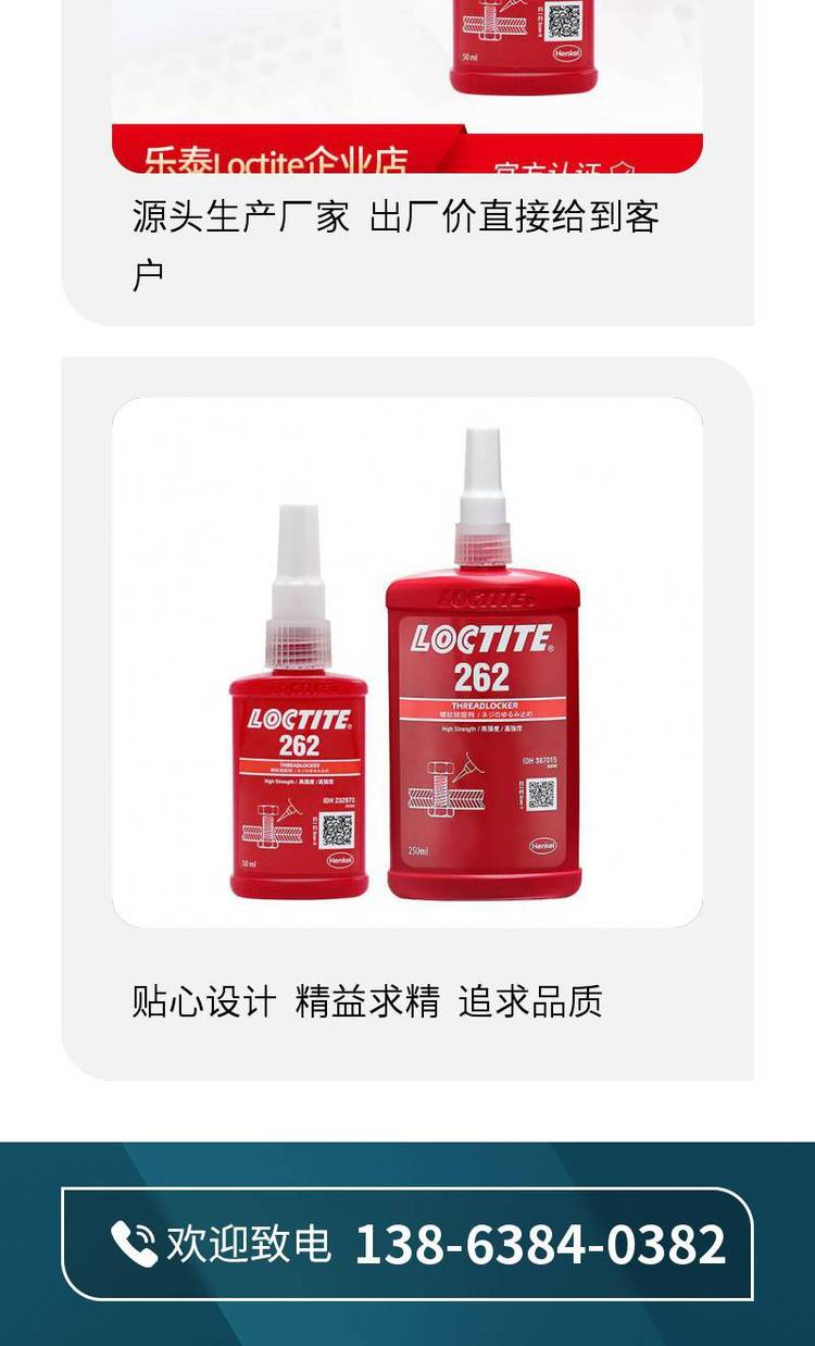 汉高262螺纹锁固剂中高强度紧固胶乐泰胶粘剂50ml