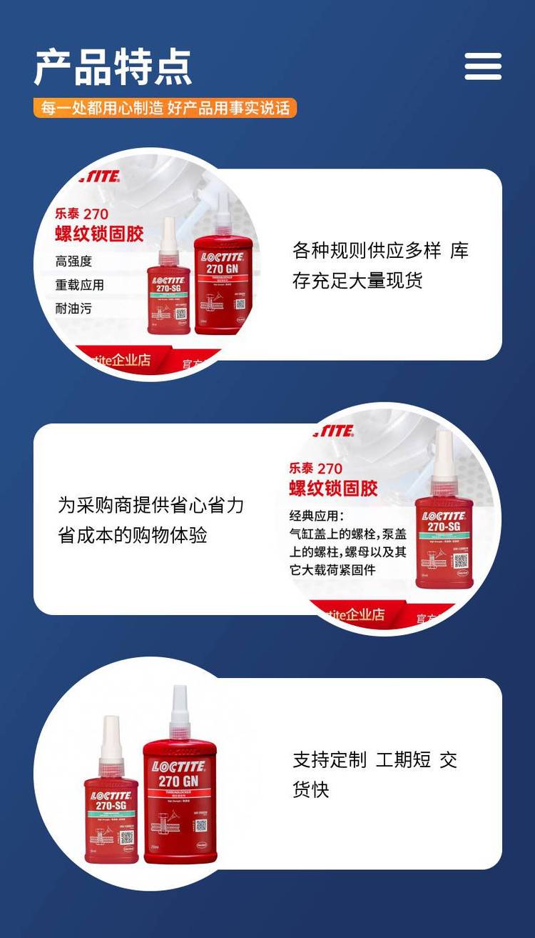 产品特性 | 螺纹锁固剂 | ||