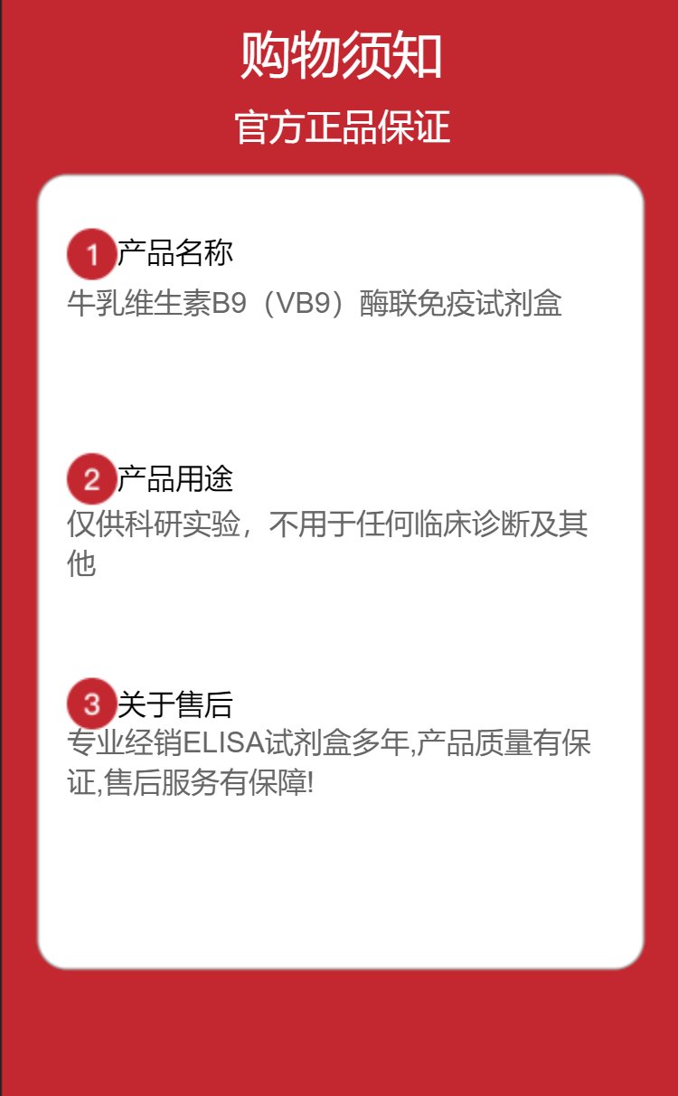 恒远生物牛乳维生素B9(VB9)高灵敏酶联免疫试剂盒