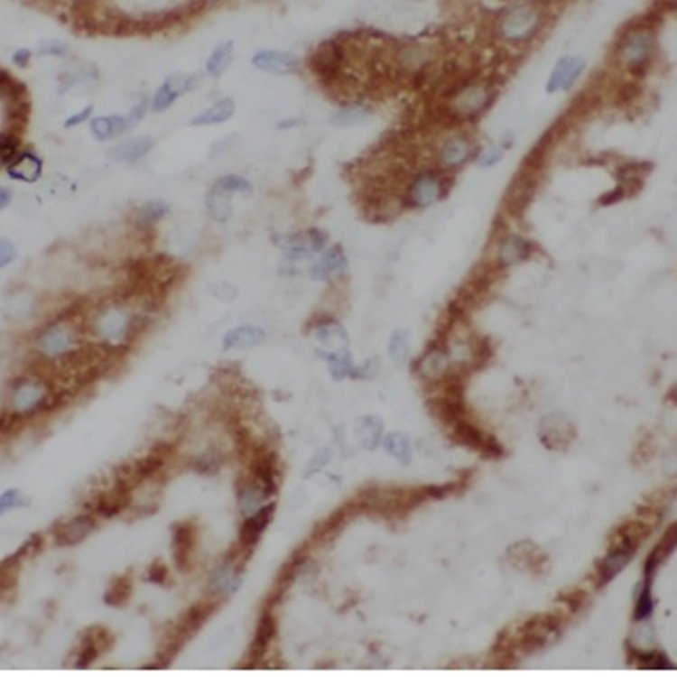 将 FNab03593(GPR132 抗体)以 1:50稀释度,使用石蜡包埋的人肾组织切片进行免疫组织化学实验。