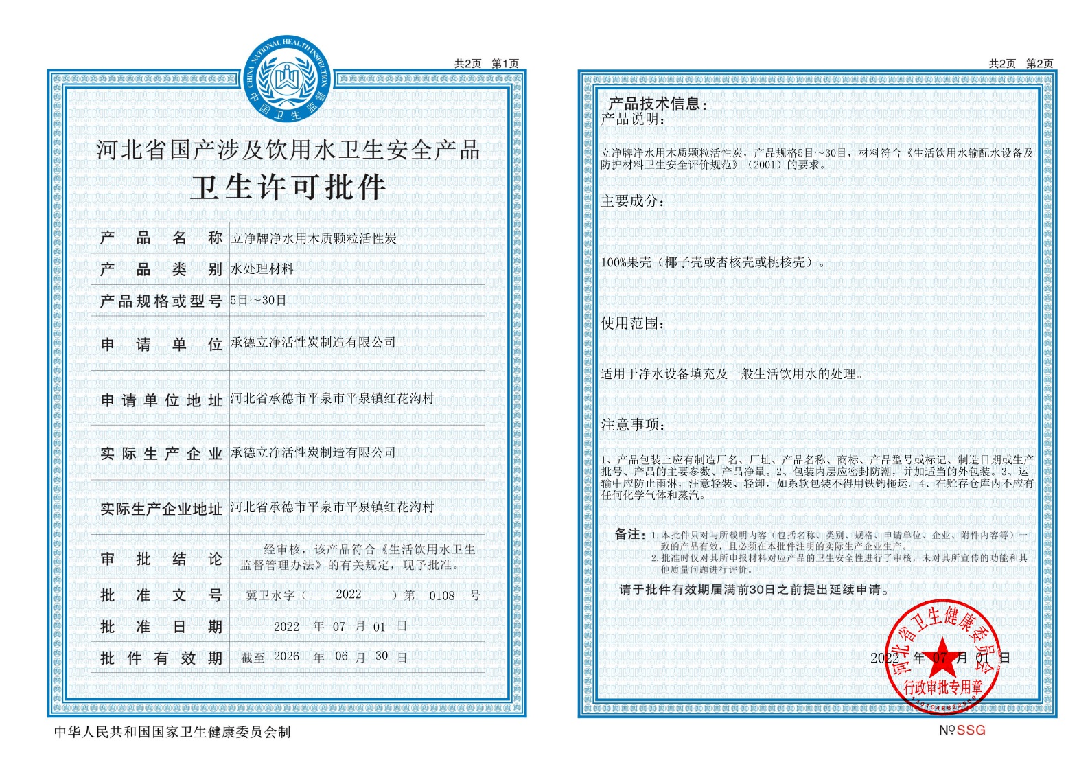 本品以优质果壳为原料,采用物理法经炭化、气体活化而成。具有发达的孔隙结构,对净化饮用水有好的效能,能除去水中等有害物质,并降低色度,是装填家庭、社会团体、宾馆及高纯度净化水生产设备的理想材料。