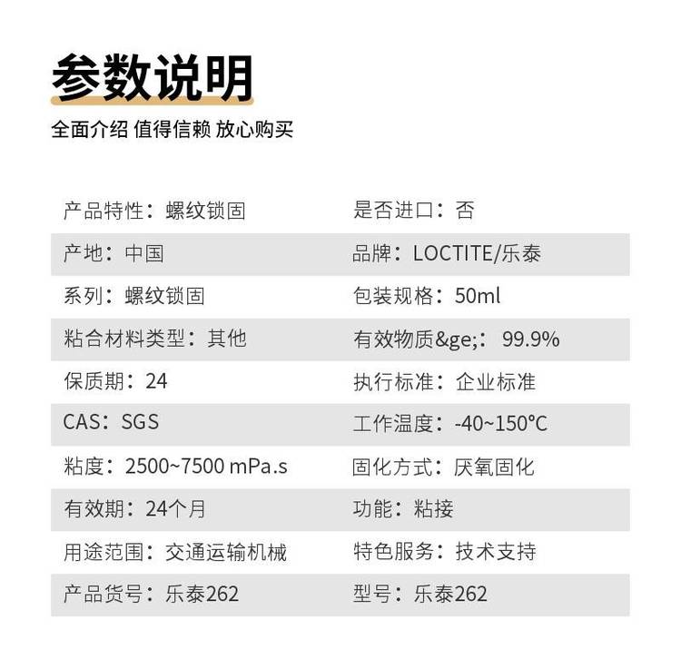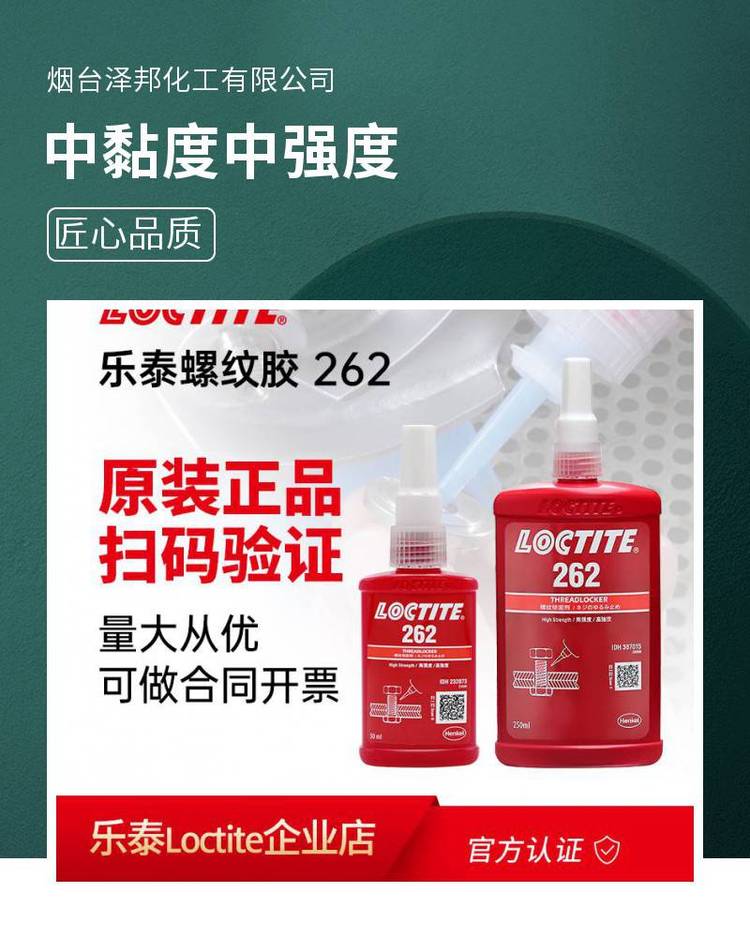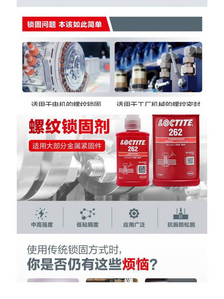 汉高乐泰262螺纹锁固剂防松动螺丝密封胶紧固螺栓厌氧胶50ml