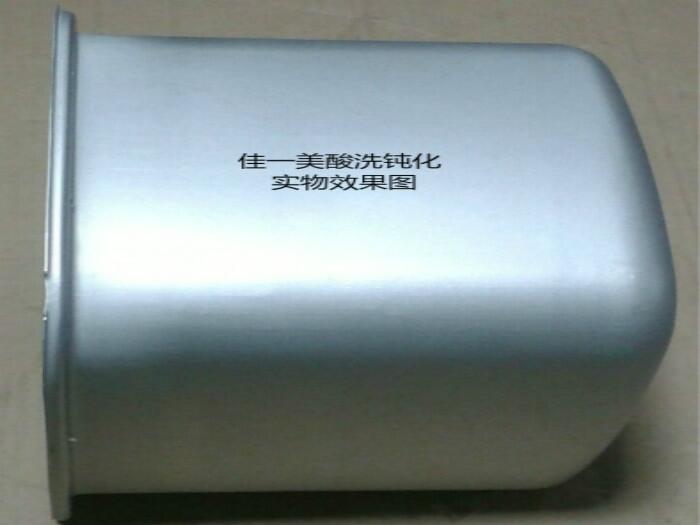 不锈钢酸洗钝化操作工艺:将不锈钢工件放入JYM-102不锈钢酸洗钝化液浸泡10至40分钟,工件充分接触钝化液。钝化后过水冲净工件表面残留的酸洗钝化液,然后烘干包装即可,工艺操作简单。