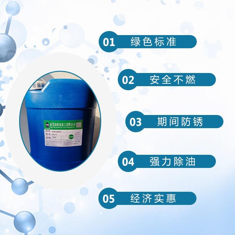 HQ-117强力除油清洗剂主要用于清洗各类常见的顽固油焦和油污,它可以快速安全的溶解油焦和油污。一种绿色环保,不燃不爆,快速安全的除油清洗剂。皓泉除油清洗剂是一种浓缩型的清洗剂,并且没有异味与安全隐患。皓泉除油清洗剂不燃不爆,无腐蚀,使用范围和条件没有任何限制,使用后可以直接排放。所以在使用此清洗剂清洗各类油脂时可大幅降低清洗成本,节省清洗费用,减少安全隐患和环境污染,并对清洗过的零部件有短期防腐防锈作用。
