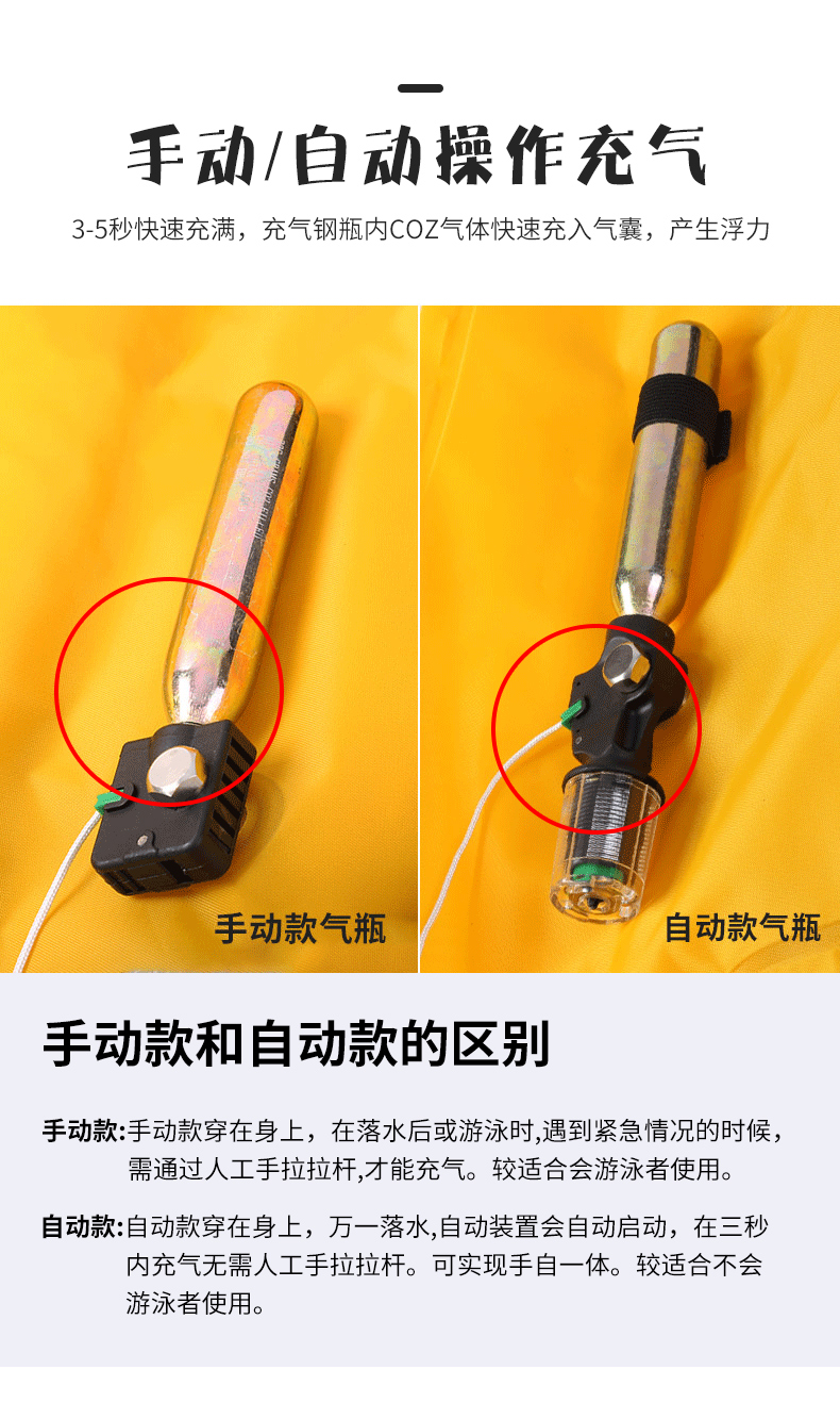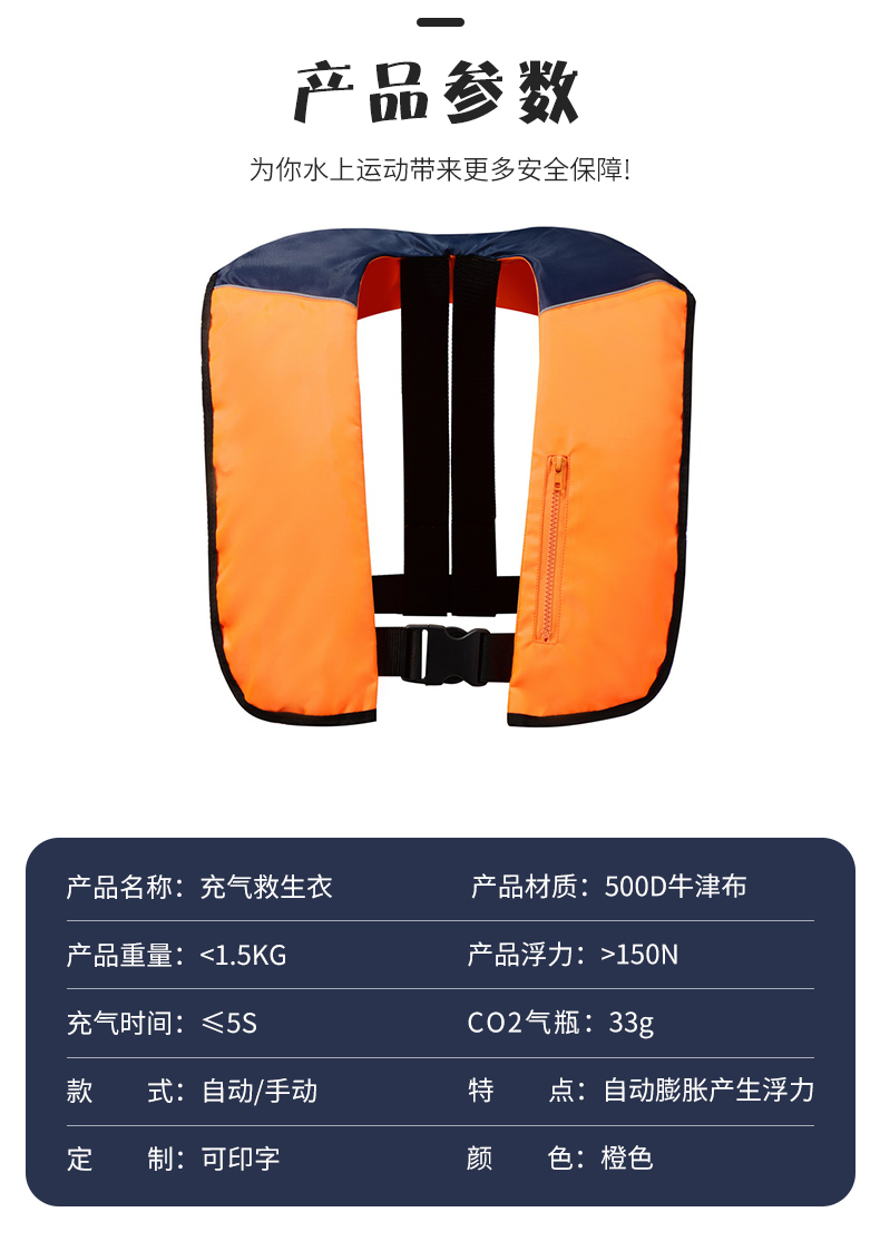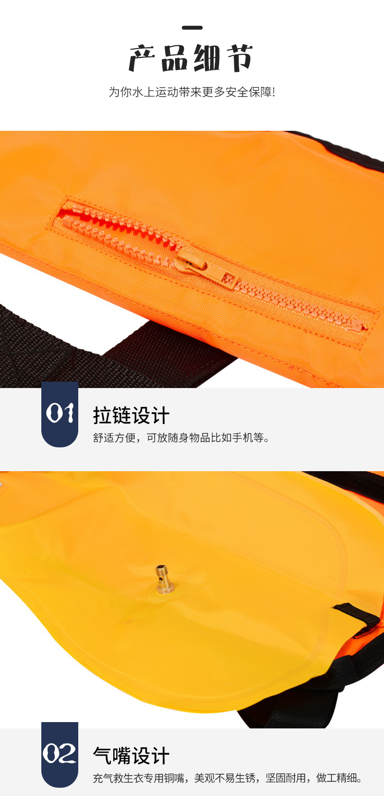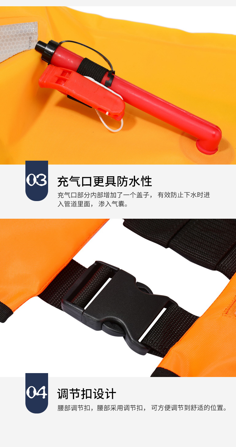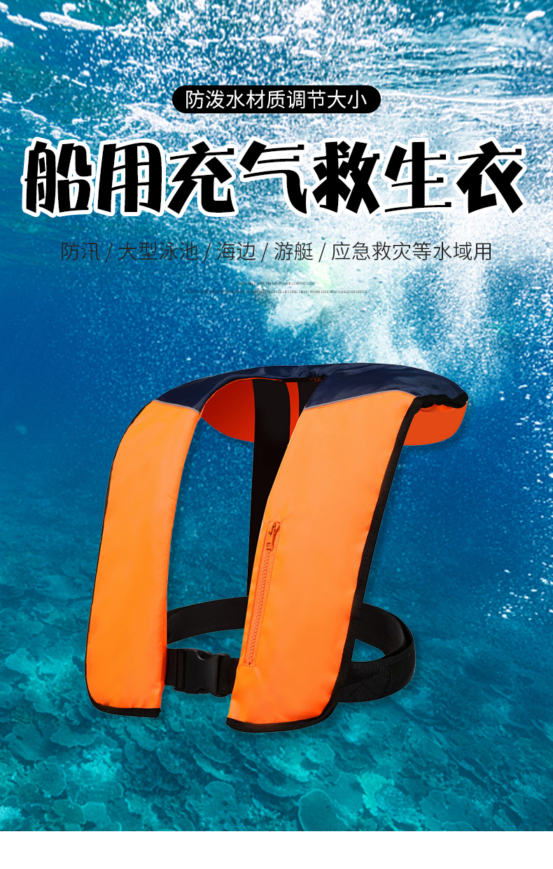 气胀式充气救生衣水域救援专业船用大浮力浮潜马甲