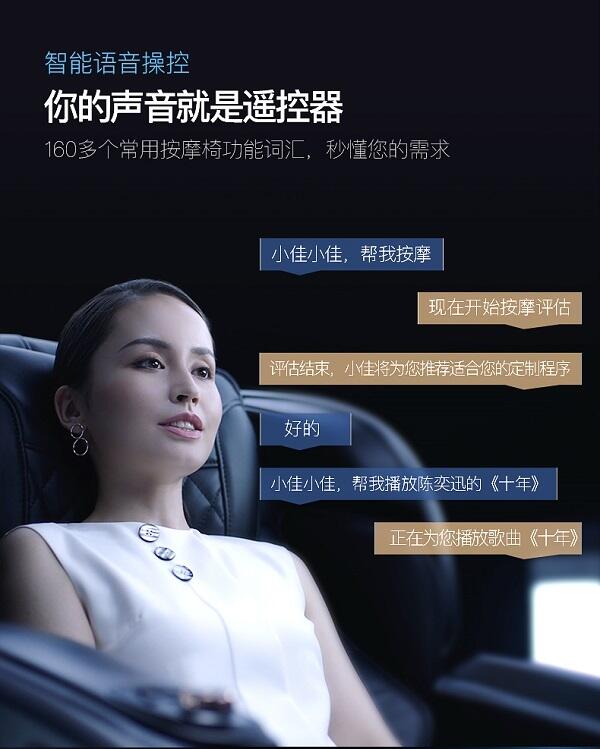 同时,新增全新疲劳感测系统、人脸识别、语音控制等多项创新智能配置,为广大消费者还原推拿大师般精准、可为您量身定做按摩程序,专属自己的按摩手法