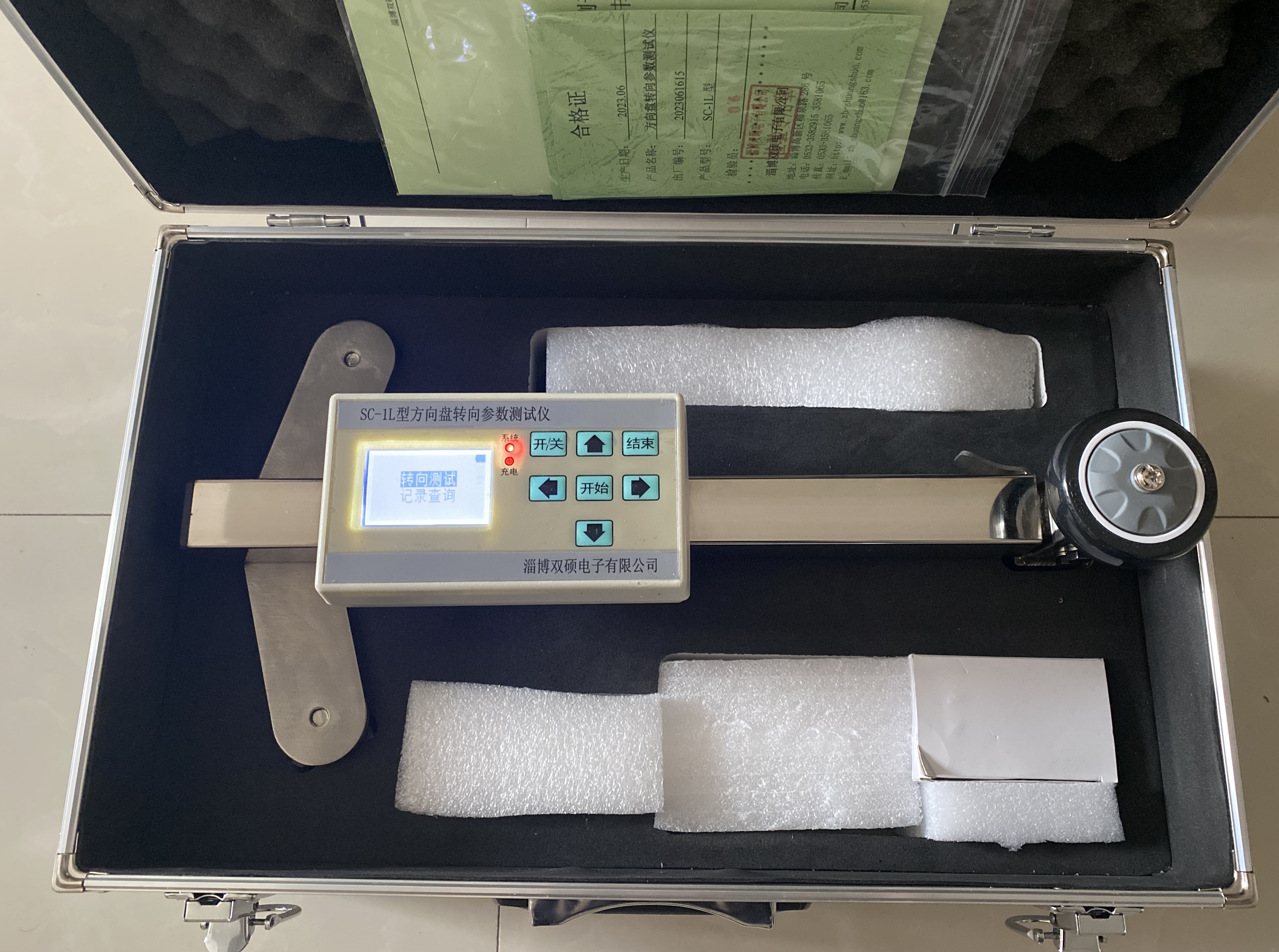 SC-1L转向参数测试仪,是淄博双硕电子有限公司研制生产使用于汽车,拖拉机,工程机械及其它轮式车辆的转向性能实验。可测量方向盘的最大自由转动量,方向盘转向角;动态转向力,原地转向力等参数;具有峰值保存,实时显示功能。具有数据掉电保存。数据打印和串口通讯功能。