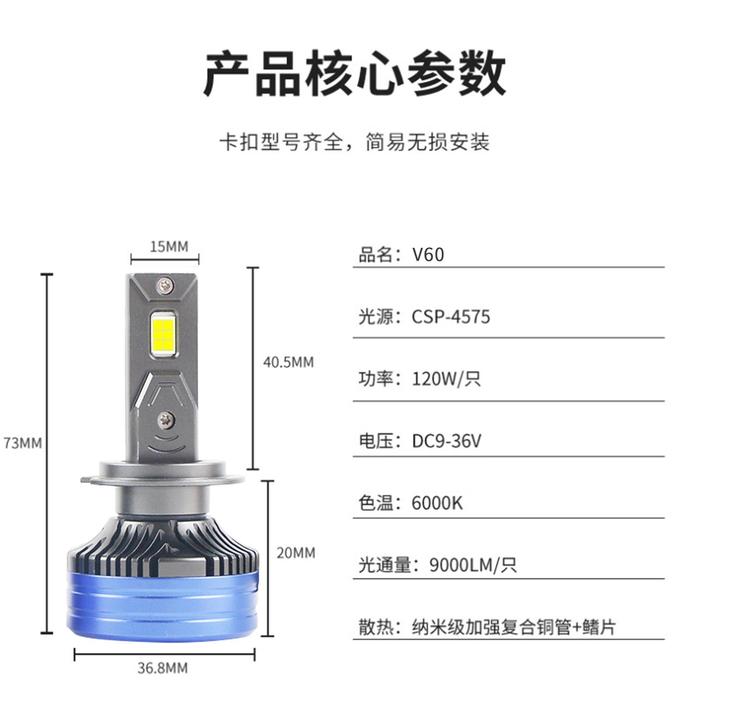 激光120W大功率双铜管汽车led大灯超亮聚光改装h7h11H49005车灯泡