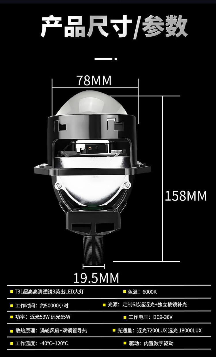 汽车3寸双光透镜led灯双杯灯高亮聚光大功率65W激光矩阵远光灯炮