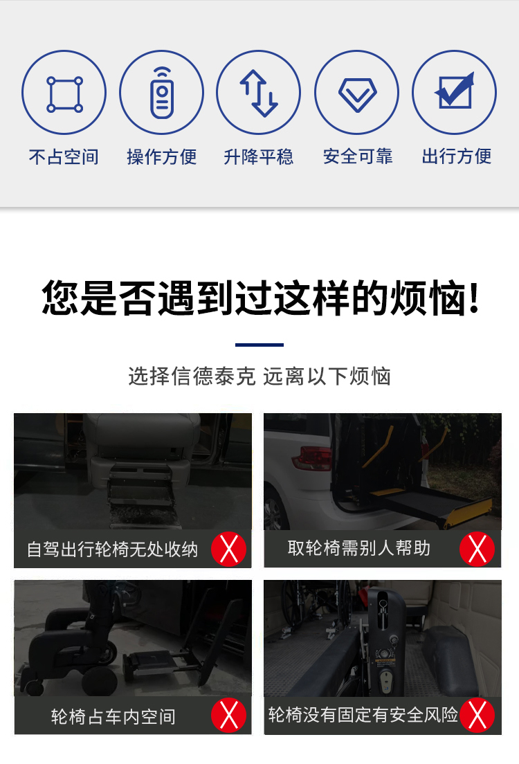 欧盟CE认证无障碍车型遥控操作轮椅收纳装置信德泰克