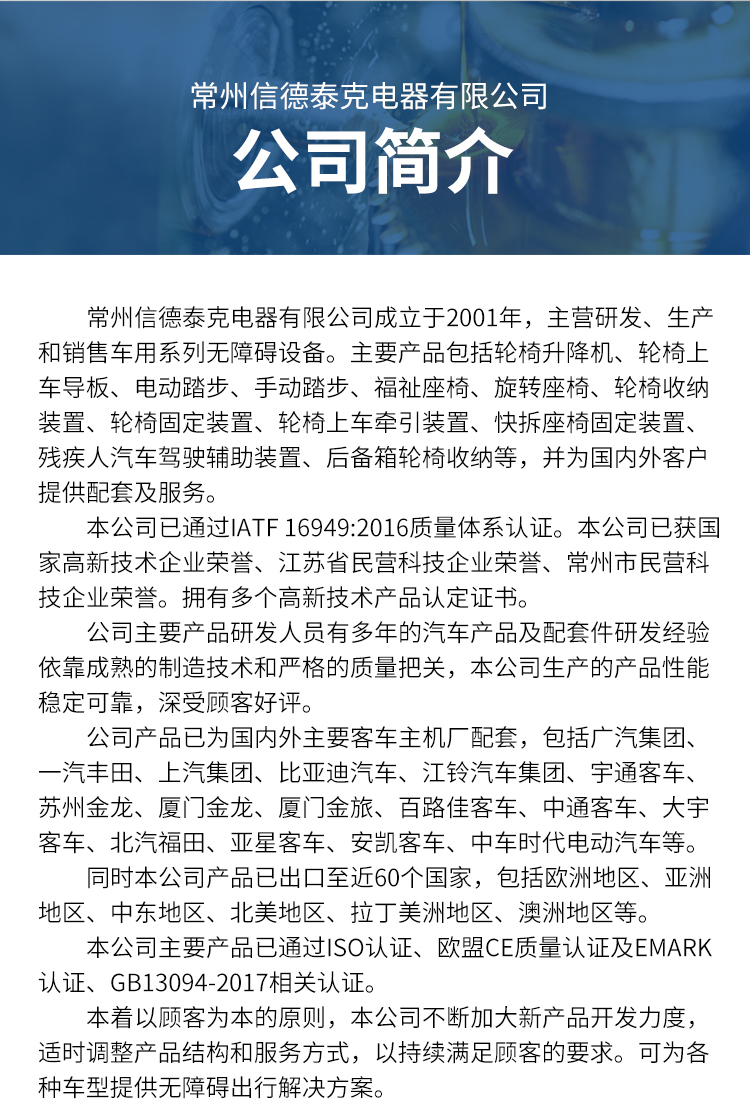 应用领域 | 车辆改装 无障碍设施 轮椅人群 福祉设备 | ||