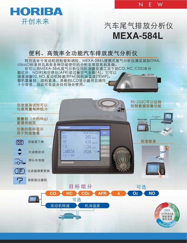 测量对象 | 适用于全球范围内的汽车双怠速排放测试、小型通机(摩托车、割草机、园林机械等燃油发动机)排放分析测试 | ||