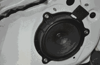 原车车门一张并拆下门板,前后车门板内部结构。只有一层能起到防尘作用的塑料膜,隔音设施几乎没有。其实,车门的隔音是影响喇叭音质好坏的关键所在,是解决音响环境缺失的第一步,而原车的喇叭从外观上看就知道音质效果如何了!