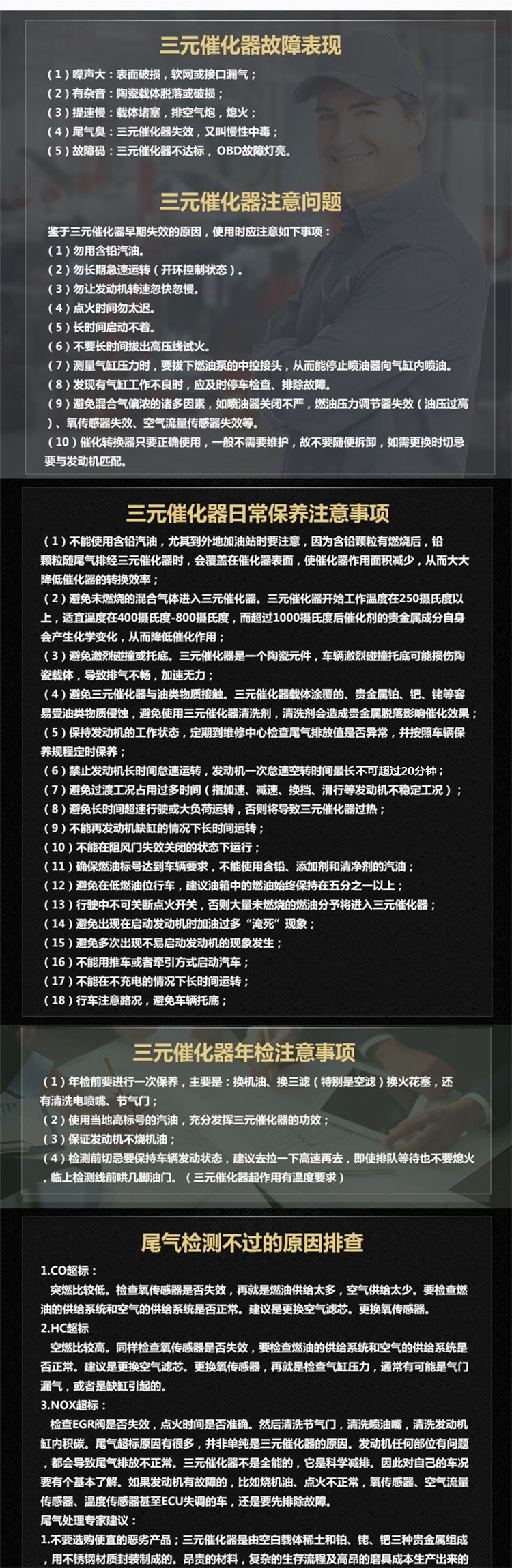 特别是第四点 安装好新的三元催化器后,?如果着急审车,必须拉到高速上跑路70KM/公里/30分钟,才能使三元催化器达到检测效果!)?因为三元催化器起作用是有温度要求的!如果不着急审车,正常行驶就可以!前一周车子可以多跑跑!