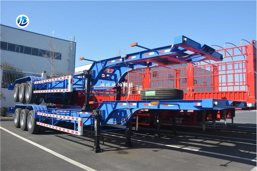 骨架式集装箱半挂车即载货部位为集装箱结构的半挂车,主要有40英尺骨架、45英尺骨架等,一般都带有锁具。