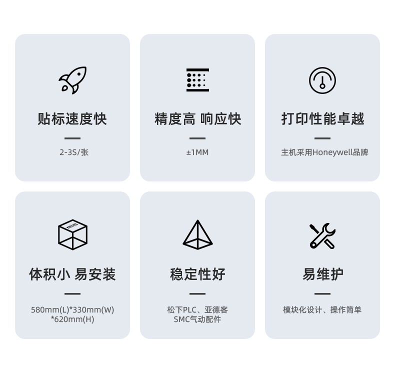 适用标签尺寸(含底纸) | 长最短5mm、最长根据吸标板大小;宽最小20mm、最大114mm | ||