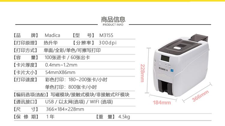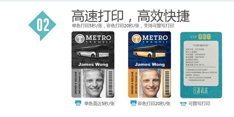 【打印速度】彩色打印:180~200张卡/小时