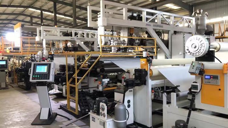 功能:通过塑料挤出机对卷材表面进行复膜或多种基材复合,以达到提高产晶的抗拉强度和防潮性能的效果。