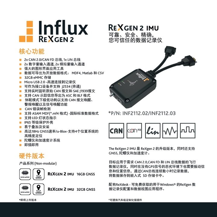 Influx ReXgen 2 IMU×CAN(CAN FD)/LIN记录仪/接口 品牌 | Influx | ||