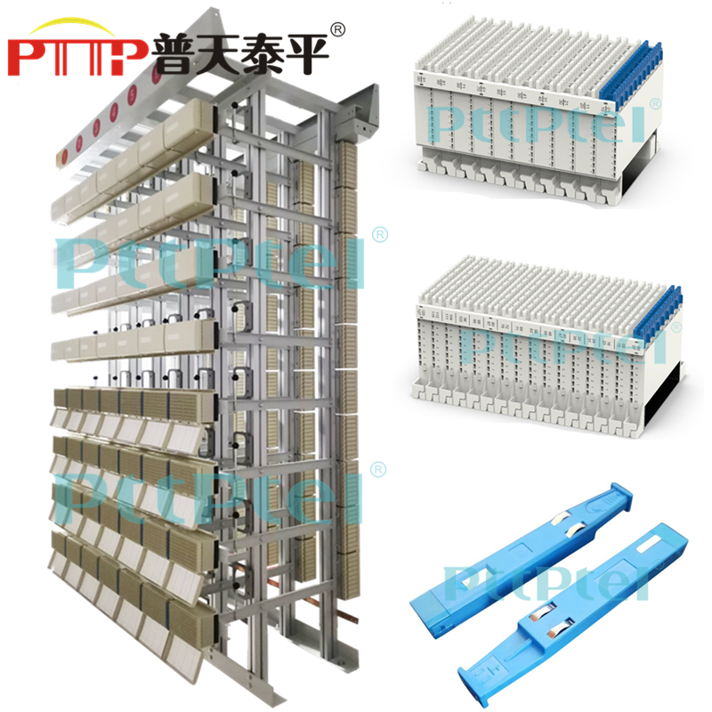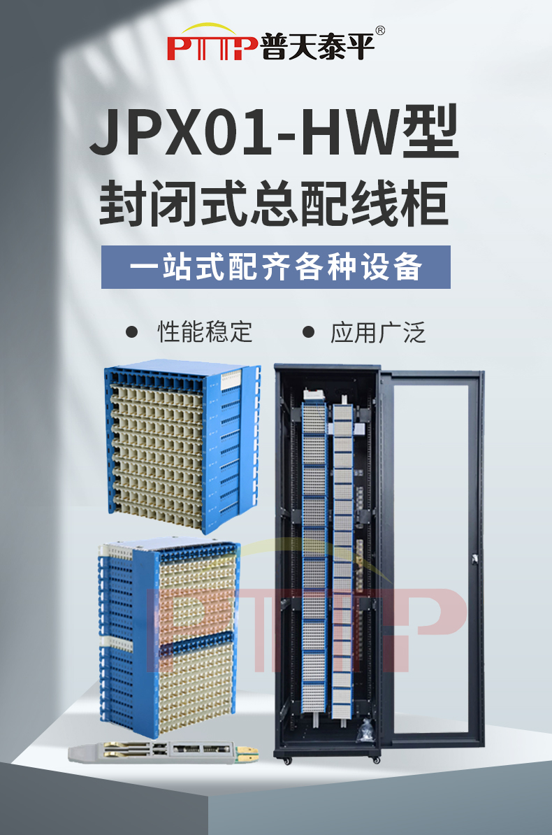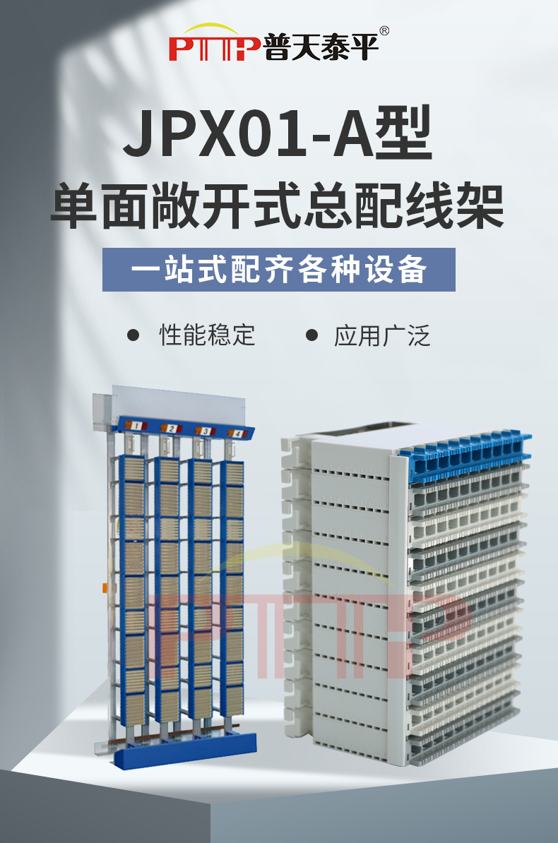 PTTPbbb JPX01 型总配线架从列告警盘、接线排,到底部护栏都提供了易于更换、清洁的列号、块号示名。总配线架由机架、保安接线排、测试接线排、保安器、总告警盘、列告警组件和附件等构成。