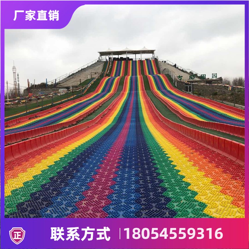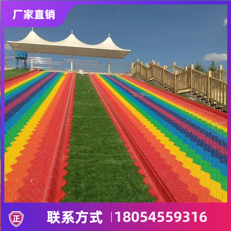 七彩滑道由塑胶铺设而成,彩虹滑道波澜起伏,宛如鲜艳的彩虹,从长长的滑道飞驰而下,滑道色彩靓丽,老少皆宜,动感十足。整个身体仿佛从彩虹中穿过,能够体验到不一样的速度与激情。