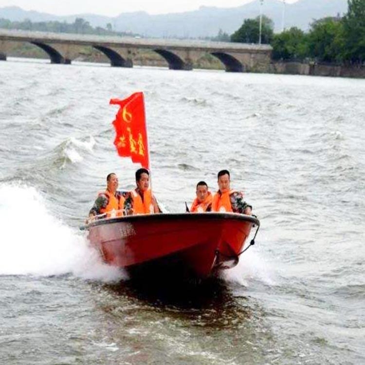 冲锋舟主要是采用不饱和聚能树脂为基本材料,以玻璃纤维为増强材料料,中间填充聚氨酯泡沫为储备浮力材料的纤维増强塑料船。具有设计美观、合理、重量轻、速度快、稳定性好、抗沉、抗老化等优点、广泛产品特性1、使用优质玻璃钢制造,坚固耐用;2、船体光滑,流线设计,造型美观;3、船体使用双层结构,更加稳固安全;4、船身装置防撞条,有效保护船体;5、两侧均安装不锈钢扶手。