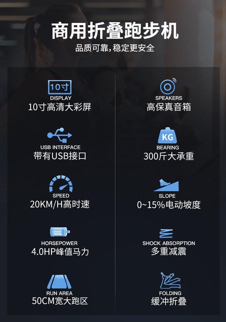 康乐佳K850D-B/C商用电动跑步机 家用静音健身房跑步机 承重 | 200kg | ||