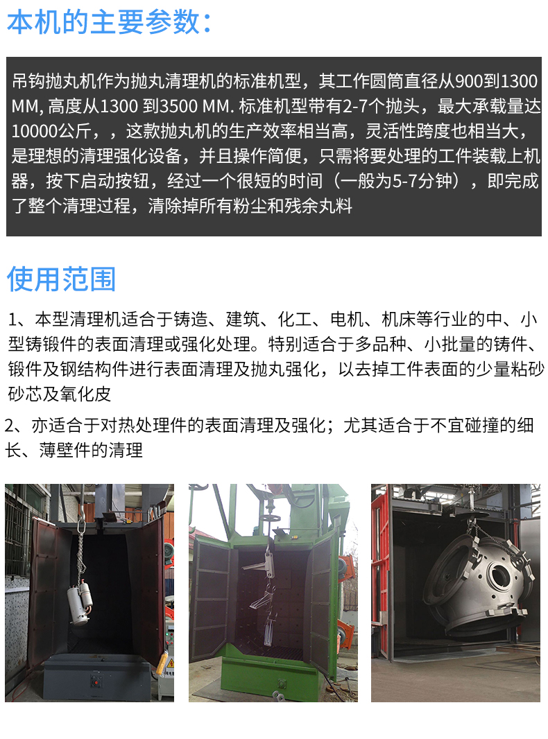 吊钩式抛丸机汽车零件强化表面镀钛前处理去划痕去毛边设备喷丸机
