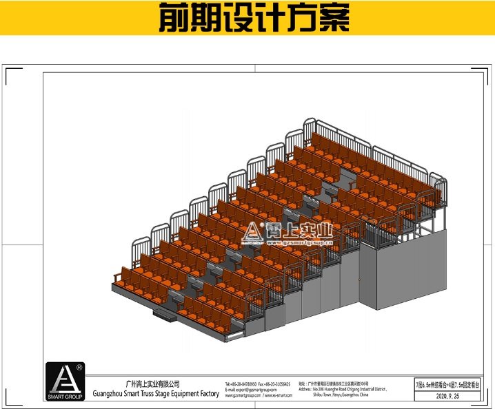 广州宵上舞台设备有限公司是香港智能桁架系统公司在内地的生产工厂之一,主营产品有:桁架、舞台、看台、篷房四大类。另有:防爆栏、雷亚架、合唱台、地台等产品。我们秉承“产品是企业的形象,质量是企业的生命”的宗旨,全面推行ISO9001-2008标准化质量管理体系,获德国CE认证,欧洲TUV承重测试认证,为产品质量保驾护航。我们的产品60%远销亚洲、美洲、欧洲、非洲、中东等各国及地区以及港澳台地区。期待以我们的产品质量和服务,与您携手互惠共盈!