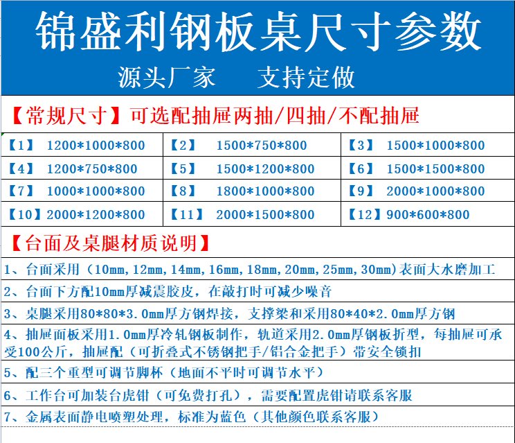 工作台类型 | 钳工工作台 | ||