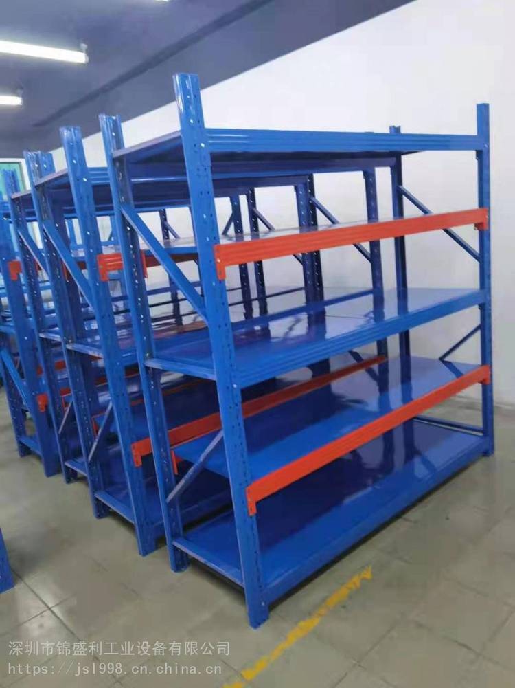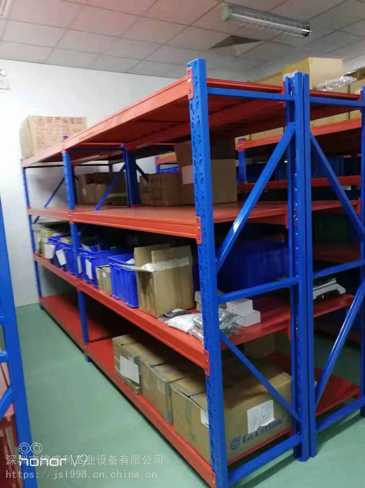 4、横梁与立柱片挂接组装成框架,较后铺设钢层板,至此一组 中型货架成型。