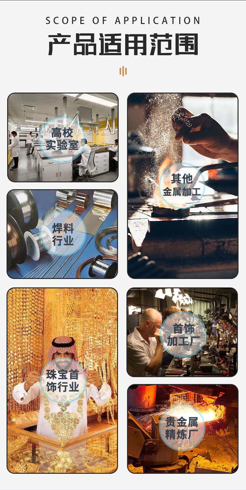 应用行业 | 精炼企业、 贵金属冶炼单位,首饰加工 | ||
