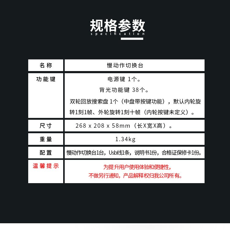 • 规格:完善