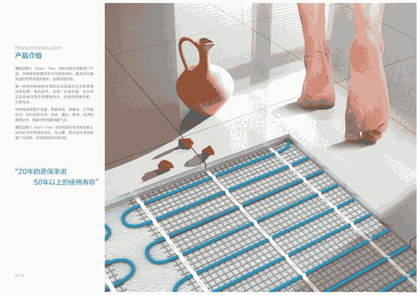 2、稳定性好,恒功率地暖,厂家提供20年质保,使用寿命同建筑物;