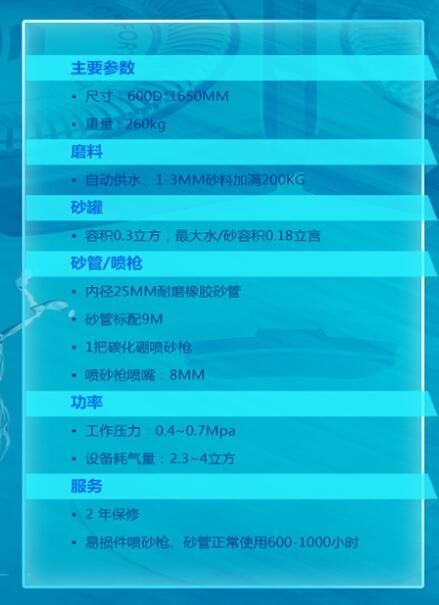 采用美国先进的砂阀结构,能精确调节砂和气压的大小。