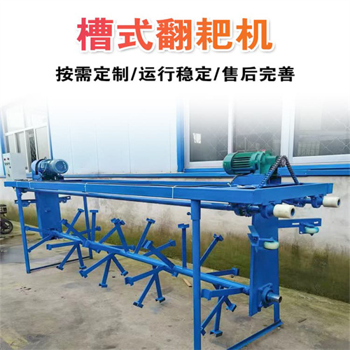 翻耙机是一种简易的槽式翻抛机,它的工作流程是养猪场通过干清粪的方式,将粪便集中存储在集污池中,而发酵堆肥槽距离猪舍不远,一般根据养殖规模的多少,按照4米宽做土建,在发酵槽中预先做好垫料,通过集污管道,喷淋系统均匀喷洒在发酵槽的垫料上,并喷洒好菌种,在翻耙机的来回搅拌翻耙下,实现粪污的降解,但是要记住一点,翻耙机的翻耙深度有限达不到槽式翻抛机的深度,一般情况下,翻耙机的深度在70~90cm,因此在建设发酵槽时要注意。
