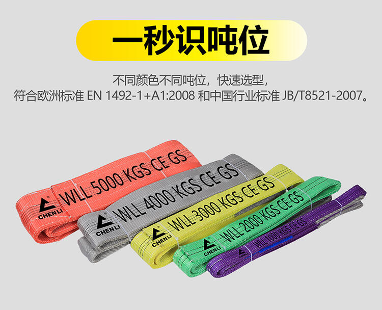 1-5吨扁平吊装带有EB、EB-A、EB-B三种型号。表面PU硬化处理,编织带身和环眼一次织成,保持其强度高。