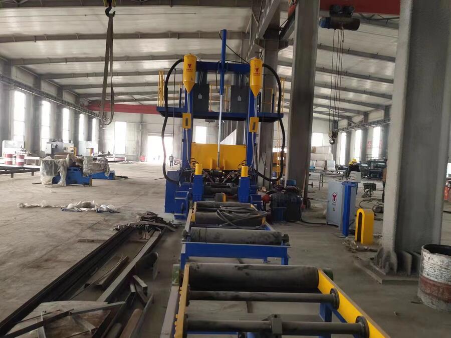 歆耀强H/T 型钢梁组焊矫一体机是“热焊热矫工艺 ”的工业化应用,主要解决了热焊腹板 18mm 以下无坡口焊接、角焊缝≤8mm、 热矫正翼板 25mm 成型、三工序结合误差消除的精度等问题。它将传统组立机、龙门焊、矫正机三台设备完成的工序集中在一台设备来进行,是将 H 型/T 型钢 的翼板与腹板直接组立、焊接、矫正的非标专用定制设备;实现无焊点、无引弧板技术,显著提高了生产效率及产品合格率,降低了生产成本,节省了场地空间,在考核指标:(元/吨、吨/平方米、吨/人、设备折旧/吨、风险/吨等)方面具有明显优势,是高效生产 H 型钢、T 型钢、辅助焊接十字柱的最新生产设备。