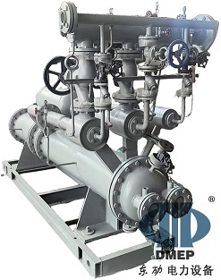 两级射汽抽气器主要由两个单级射汽抽气器(一级和二级)及表面式冷却器串联组成。其核心工作单元包括喷嘴、混合室和扩压管三部分:喷嘴将工作蒸汽加速至超音速形成高速射流,混合室实现蒸汽与不凝结气体的充分混合,扩压管则对混合气体减速增压以完成排出过程。具体工作流程为:凝汽器中的不凝结气体先被一级抽气器吸入,与高速蒸汽混合后经扩压管压缩进入一级冷却器;冷却后的残余气体再由二级抽气器处理,最终蒸汽凝结为水,空气被排入大气。
