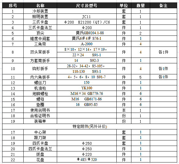 C6136卧式车床随机附件及工具清单: